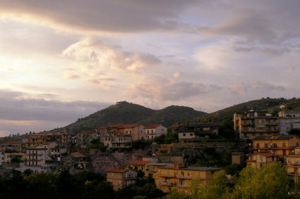 Blick von Poli auf Sant'Angelo im Abendrot - Paul G. mit Freunden - der junge Esel